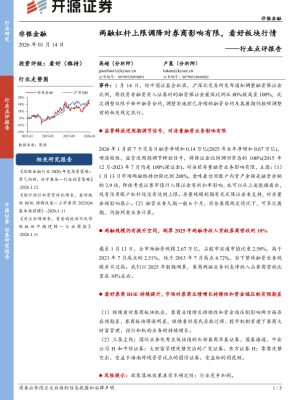 【开源证券】【202601】两融杠杆上限调降对券商影响有限,看好板块行情-3页 证券期货研究报告