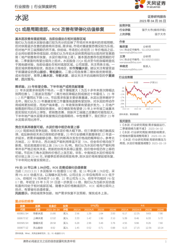 【天风证券】【20230405】Q1或是周期底部,ROE改善有望催化估值修复-14页 行业研究