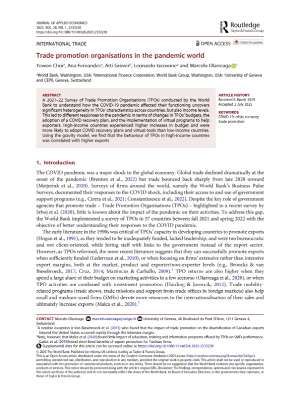【Yewon Choi&Ana Fernandes&Arti Grover&Leonardo Iacovone and Marcelo Olarreaga】【2025】Trade promotion organisations in the pandemic world-19页 学术论文