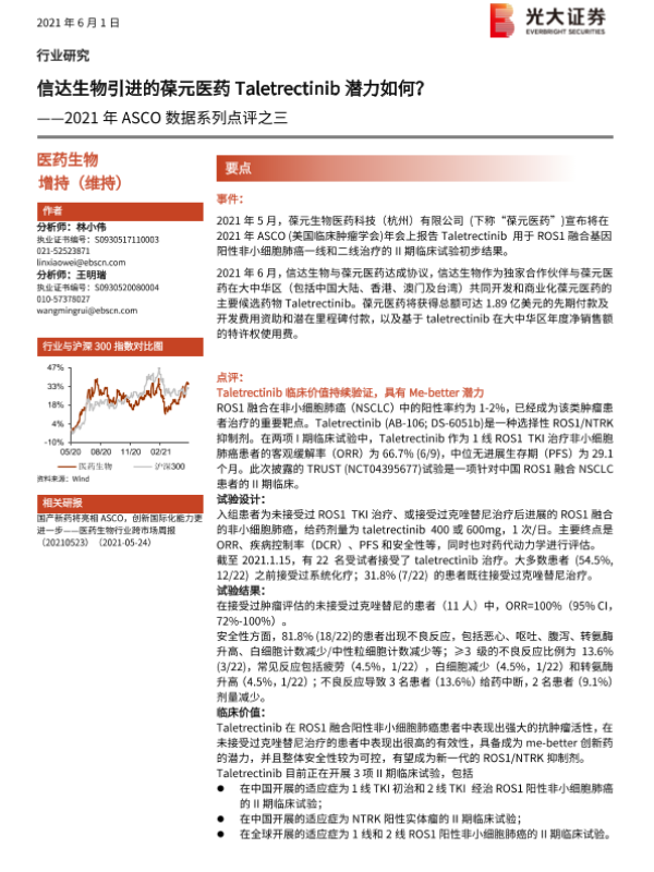 【光大证券】【20210601】信达生物引进的葆元医药Taletrectinib潜力如何?-3页 行业研究