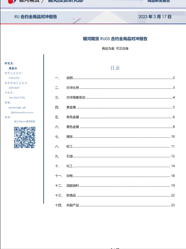 【银河期货】【20230317】RU05合约全商品对冲报告-27页 行业研究