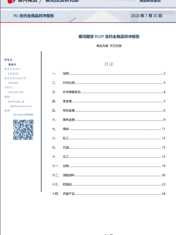 【银河期货】【20230720】RU09合约全商品对冲报告-28页 行业研究