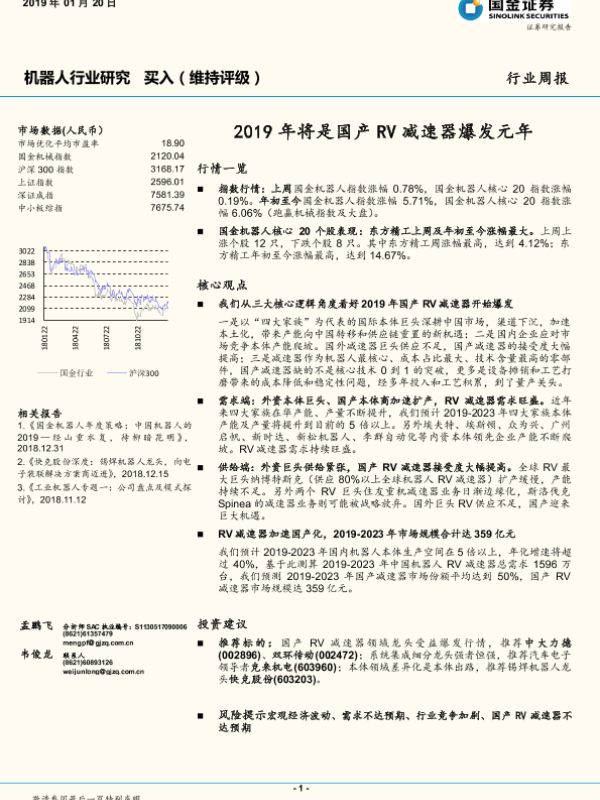 【国金证券】【20190120】2019年将是国产RV减速器爆发元年-13页 行业研究