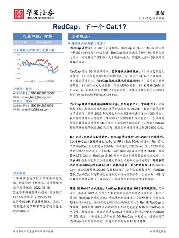 【华安证券】【20220619】20220619-华安证券-通信行业周报:RedCap,下一个 Cat.1?-18页 行业研究