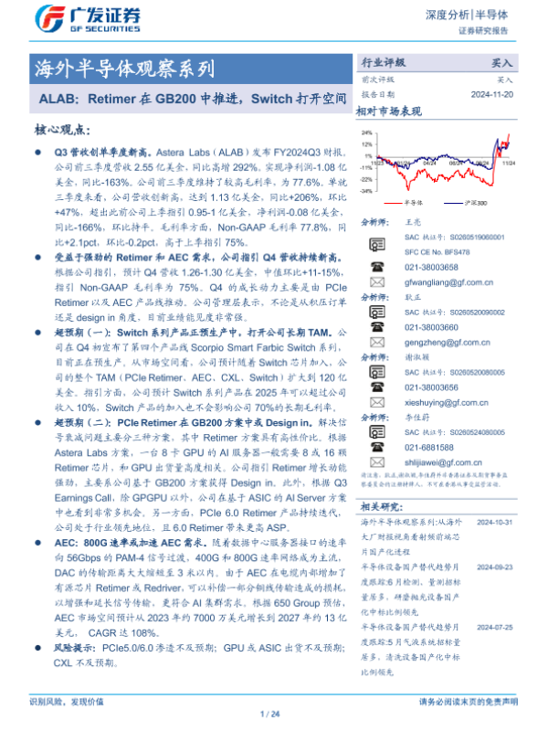 【广发证券】【20241120】海外半导体行业观察系列:ALAB,Retimer在GB200中推进,Switch打开空间-24页 行业研究