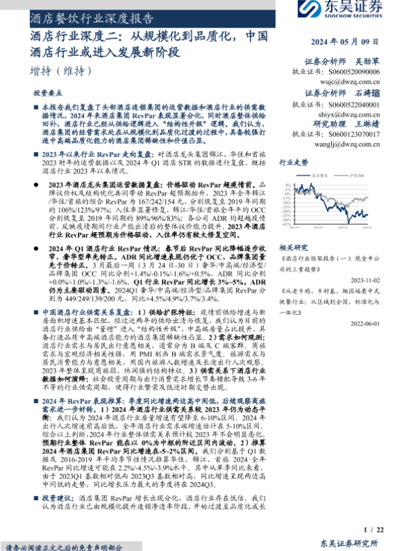 【东吴证券】【20240509】酒店行业深度二:从规模化到品质化,中国酒店行业或进入发展新阶段-22页 行业研究