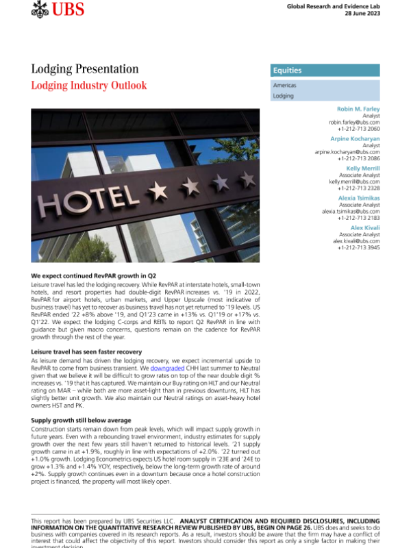 【UBS Securities LLC】【20230628】Lodging Industry Outlook-36页 行业研究