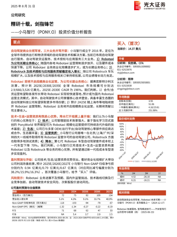【光大证券】【202508】精研十载,剑指锋芒——小马智行(PONY.O)投资价值分析报告-36页 证券期货研究报告