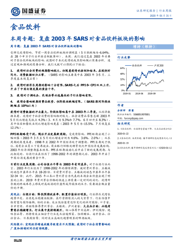 【国盛证券】【20200131】食品饮料:本周专题:复盘2003年SARS对食品饮料板块的影响-33页 行业研究