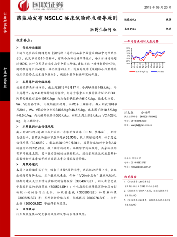 【国联证券】【20190923】药监局发布NSCLC临床试验终点指导原则-20页 行业研究