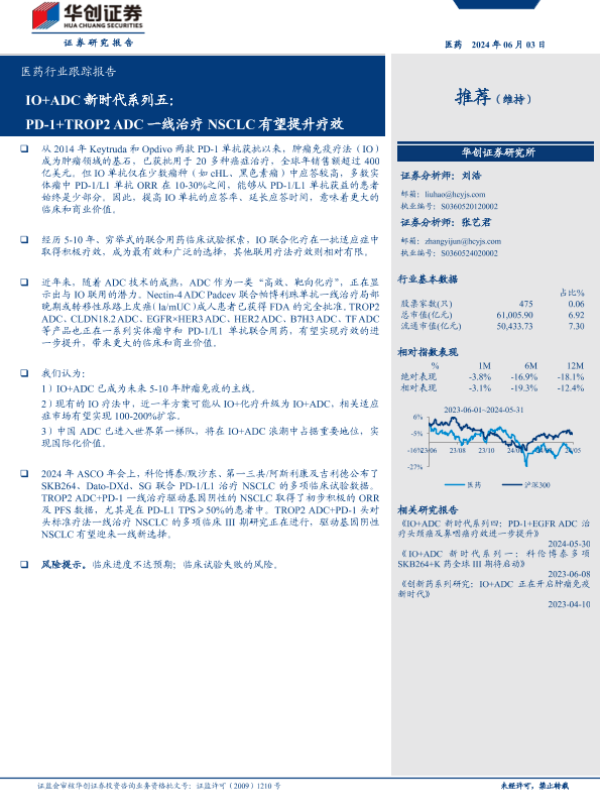 【华创证券】【20240603】医药行业跟踪报告-IO+ADC新时代系列五:PD-1+TROP2 ADC一线治疗NSCLC有望提升疗效-12页 行业研究