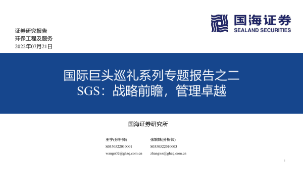 【国海证券】【20220721】环保工程及服务行业:国际巨头巡礼系列专题报告之二,SGS,战略前瞻,管理卓越-97页 行业研究