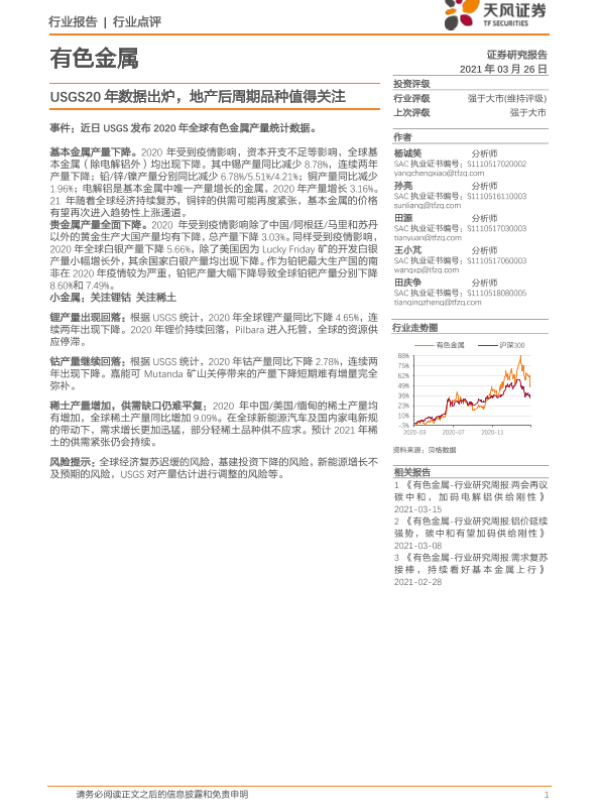 【天风证券】【20210326】20210326-天风证券-有色金属行业点评:USGS20年数据出炉,地产后周期品种值得关注-5页 行业研究