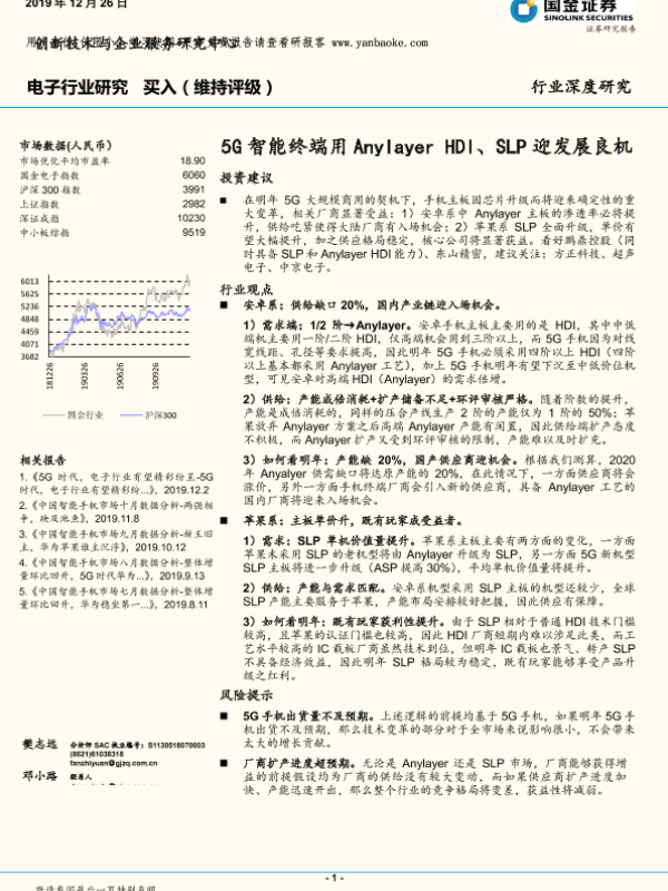【国金证券】【20191226】电子行业:5G智能终端用Anylayer_HDI、SLP迎发展良机-19页 行业研究