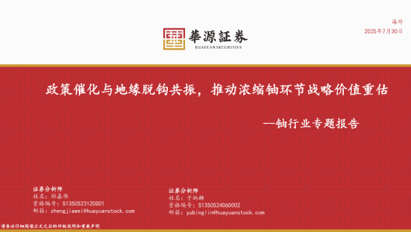 【华源证券】【202507】铀行业专题报告:政策催化与地缘脱钩共振,推动浓缩铀环节战略价值重估-27页 证券期货研究报告