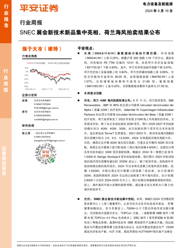 【平安证券】【20240616】电力设备及新能源行业周报:SNEC展会新技术新品集中亮相,荷兰海风拍卖结果公布-21页 行业研究