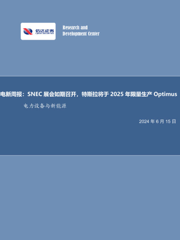 【信达证券】【20240615】电新周报:SNEC展会如期召开,特斯拉将于2025年限量生产Optimus电力设备与新能源-13页 行业研究