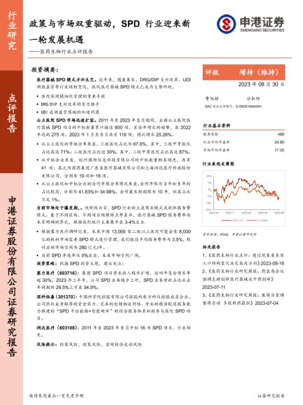 【申港证券】【20230830】医药生物行业点评报告:政策与市场双重驱动,SPD行业迎来新一轮发展机遇-10页 行业研究