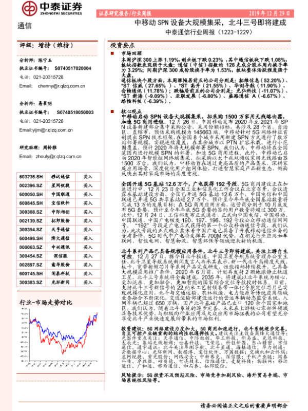 【中泰证券】【20191229】中泰通信行业周报:中移动SPN设备大规模集采,北斗三号即将建成-8页 行业研究