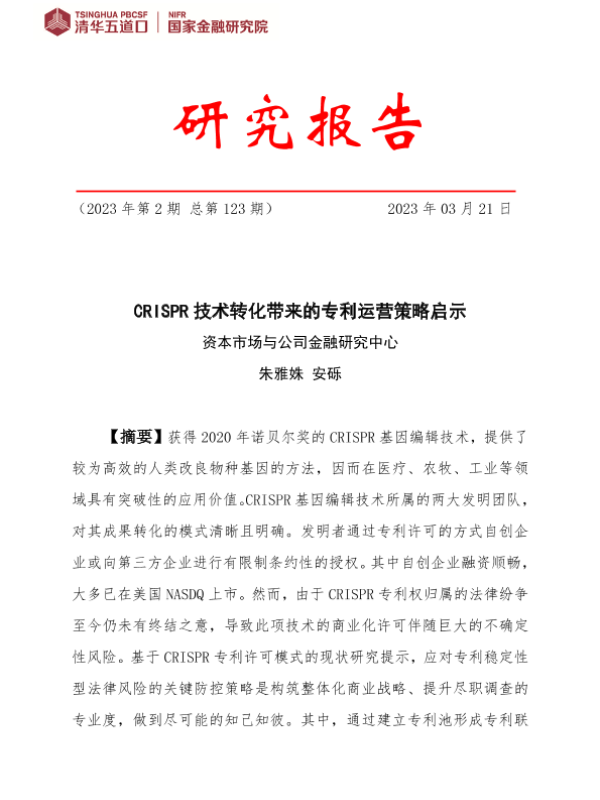 【资本市场与公司金融研究中心】【20230321】CRISPR技术转化带来的专利运营策略启示-36页 行业研究