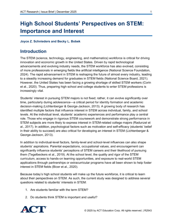【ACT】【2024】High School Students’ Perspectives on STEM Importance and Interest-28页 市场调研