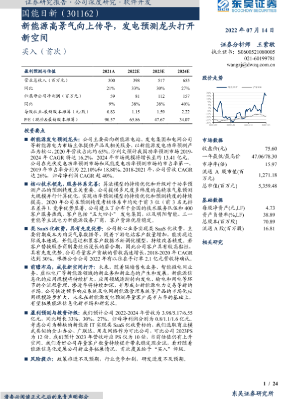 【东吴证券】【20220714】新能源高景气向上传导,发电预测龙头打开新空间-24页 行业研究