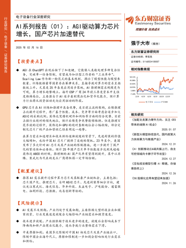 【东方财富证券】【20250216】电子设备行业深度研究-AI系列报告(01):AGI驱动算力芯片增长,国产芯片加速替代-42页 行业研究