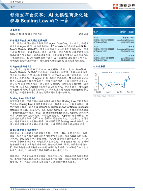 【华泰证券】【20241202】电子行业智谱发布会洞察:AI大模型商业化进程与Scaling Law的下一步-15页 行业研究