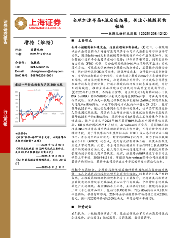 【上海证券】【202512】全球加速布局+适应症拓展,关注小核酸药物领域-3页 证券期货研究报告