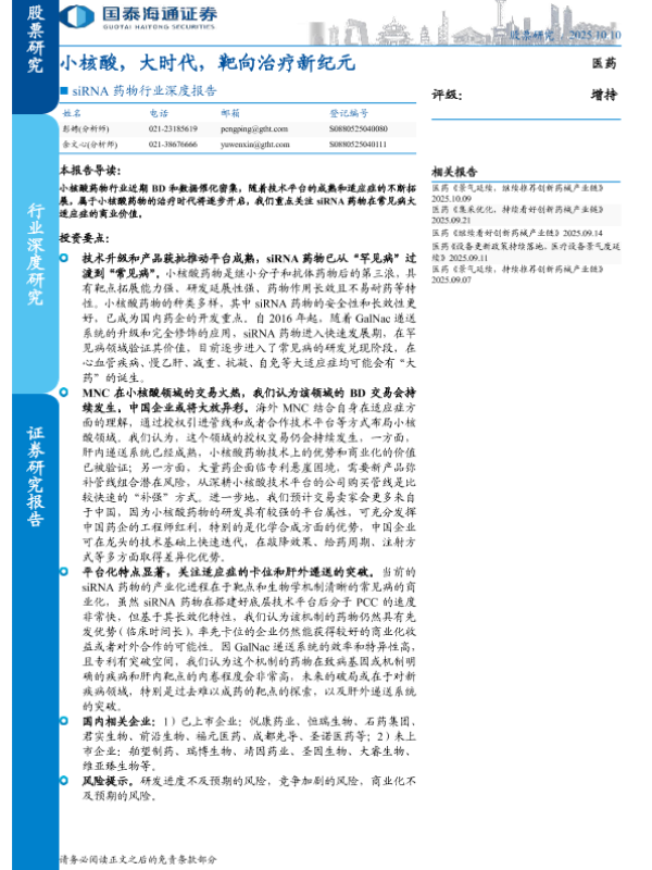 【国泰海通证券】【202510】小核酸,大时代,靶向治疗新纪元-23页 证券期货研究报告