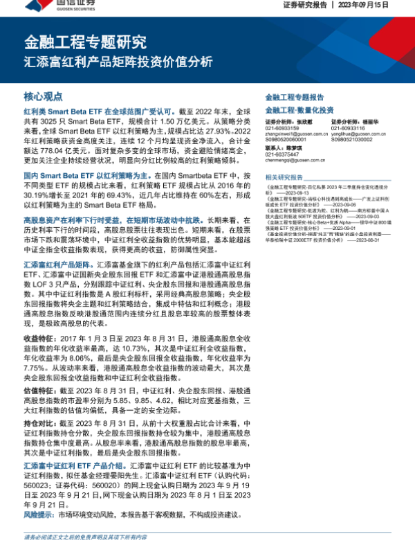 【国信证券】【20230915】金融工程专题研究:汇添富红利产品矩阵投资价值分析-24页 行业研究
