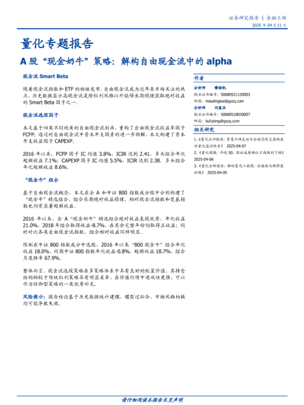 【国盛证券】【20250411】量化专题报告:A股“现金奶牛”策略。解构自由现金流中的alpha-22页 证券期货研究报告