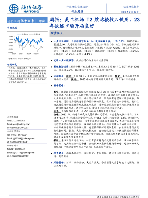 【海通证券】【20230212】交通运输行业周报:美兰机场T2航站楼投入使用,23年快递市场开局良好-10页 行业研究