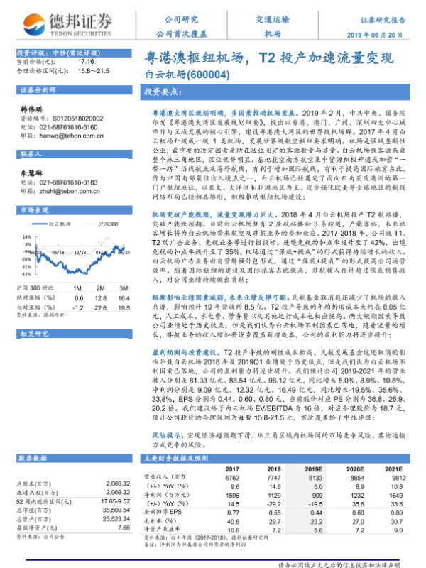 【德邦证券】【20190620】粤港澳枢纽机场,T2投产加速流量变现-22页 行业研究