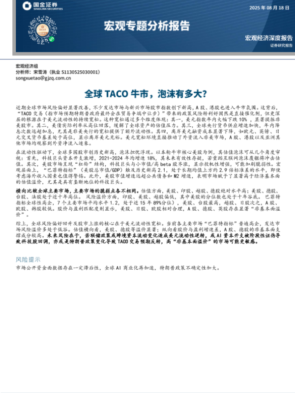【国金证券】【202507】宏观专题分析报告:全球TACO牛市,泡沫有多大?-15页 证券期货研究报告