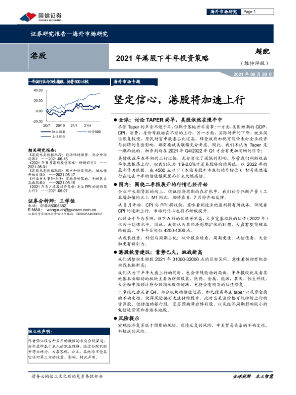 【国信证券】【20210629】2021年港股下半年投资策略:坚定信心,港股将加速上行-34页 行业研究