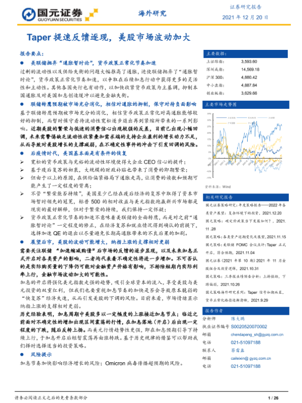 【国元证券】【20211220】海外研究:Taper提速反馈逐现,美股市场波动加大-26页 行业研究