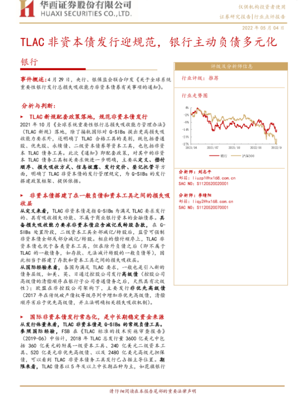 【华西证券】【20220504】TLAC非资本债发行迎规范,银行主动负债多元化-4页 行业研究