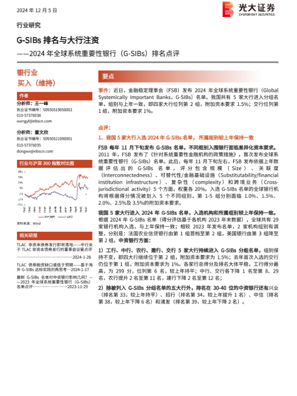 【光大证券】【20241205】2024年全球系统重要性银行(G-SIBs)排名点评:G-SIBs排名与大行注资-10页 行业研究