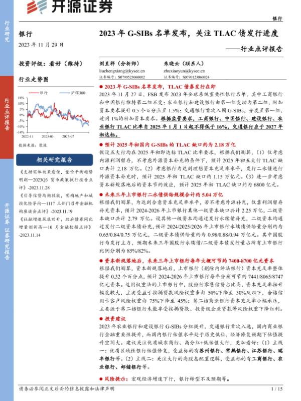 【开源证券】【20231129】2023年G-SIBs名单发布,关注TLAC债发行进度-15页 行业研究