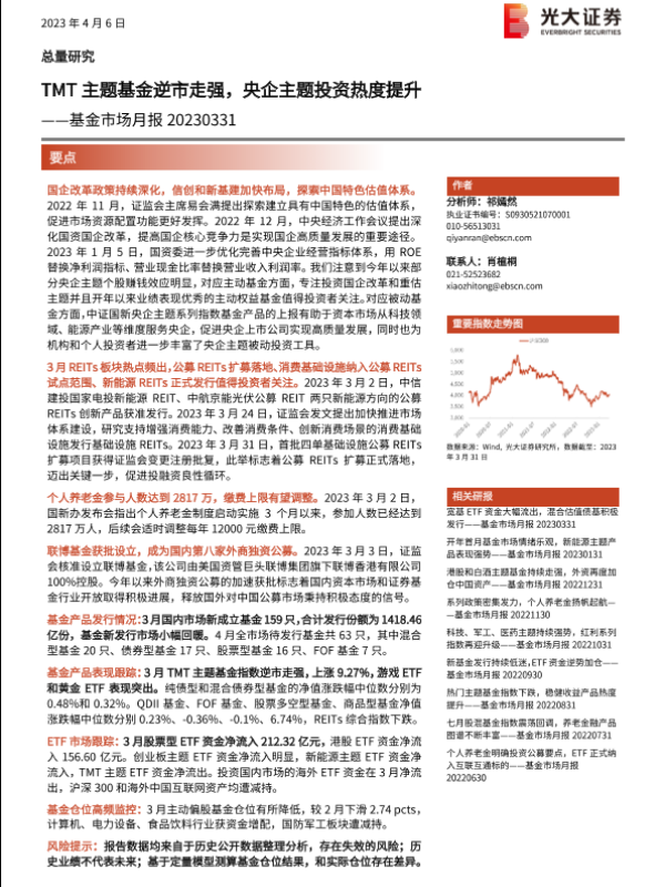 【光大证券】【20230406】基金市场月报:TMT主题基金逆市走强,央企主题投资热度提升-25页 行业研究