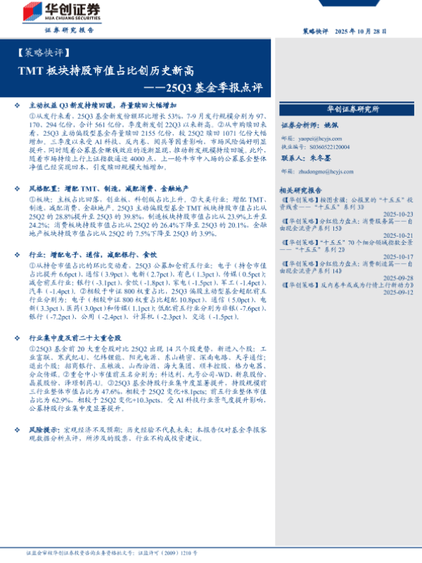 【华创证券】【202510】【策略快评】TMT板块持股市值占比创历史新高——25Q3基金季报点评-14页 证券期货研究报告