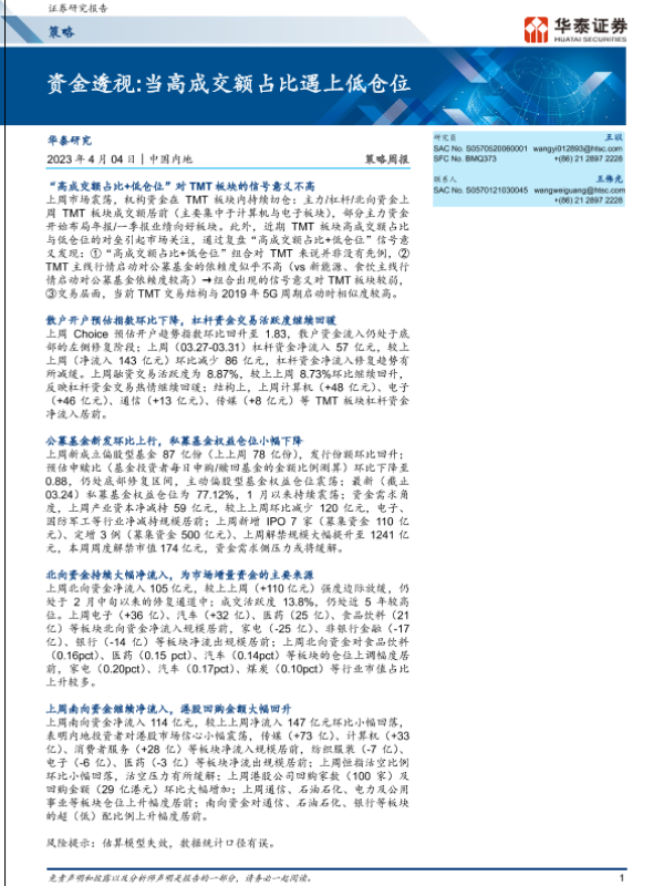 【华泰证券】【20230404】策略周报:资金透视:当高成交额占比遇上低仓位-23页 行业研究