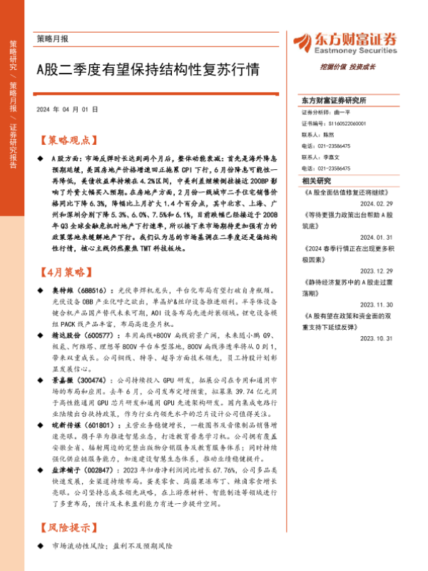 【东方财富证券】【20240401】策略月报:A股二季度有望保持结构性复苏行情-13页 行业研究