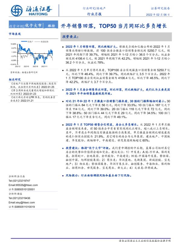 【海通证券】【20220206】房地产行业月报:开年销售回落,TOP50当月同环比多负增长-9页 行业研究