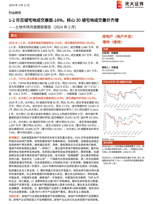 【光大证券】【20240312】房地产行业土地市场月度跟踪报告(2024年2月)-16页 行业研究