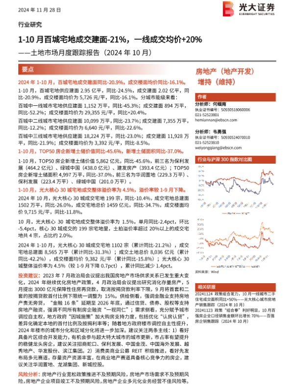 【光大证券】【20241128】房地产行业土地市场月度跟踪报告(2024年10月)-15页 行业研究