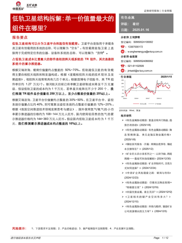 【五矿证券】【20250116】低轨卫星结构拆解:单一价值量最大的组件在哪里?-12页 行业研究