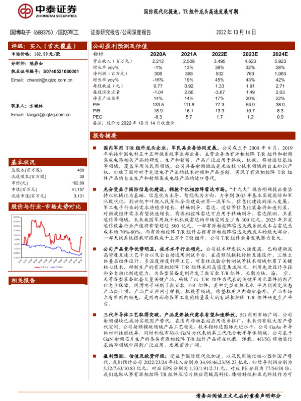 【中泰证券】【20221014】国防现代化提速,TR组件龙头高速发展可期-29页 行业研究