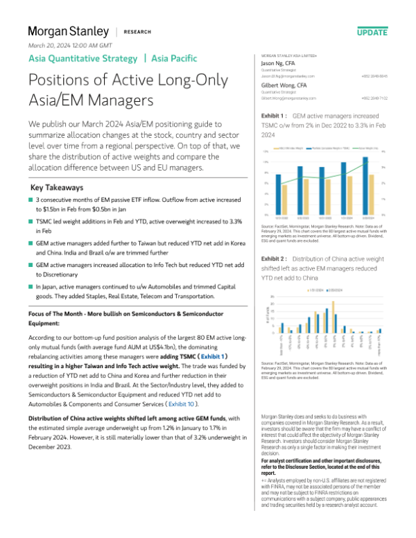 【Morgan Stanley】【20240229】Asia Quantitative Strategy Positions of Active Long-Only Asia/EM Managers-20页 行业研究